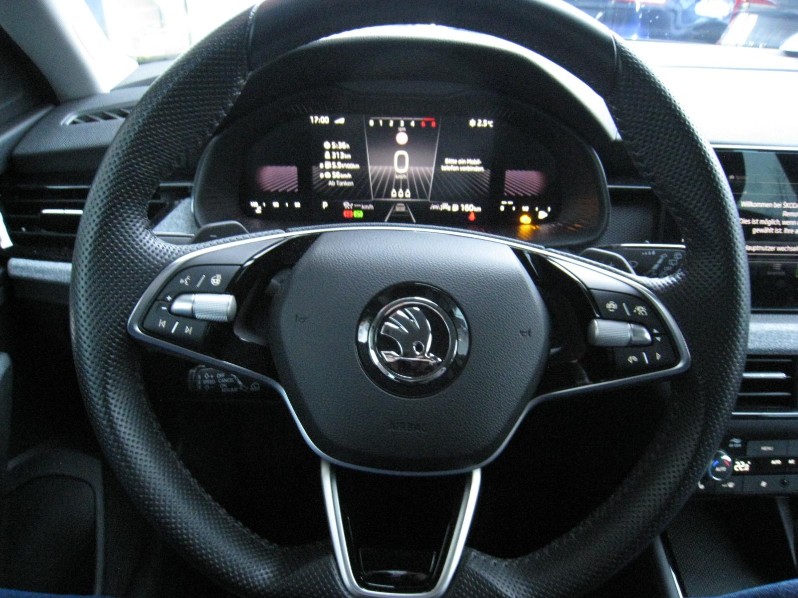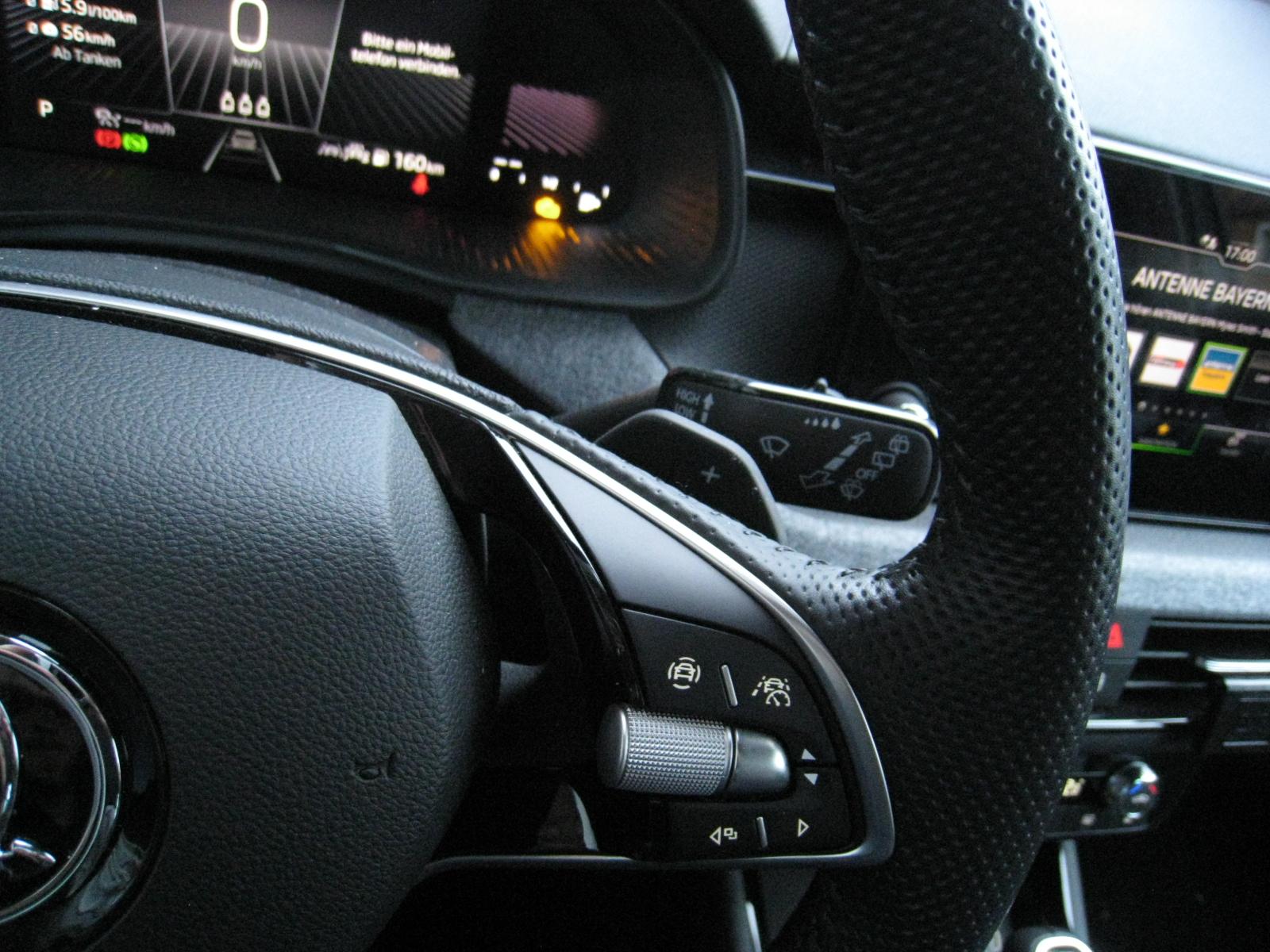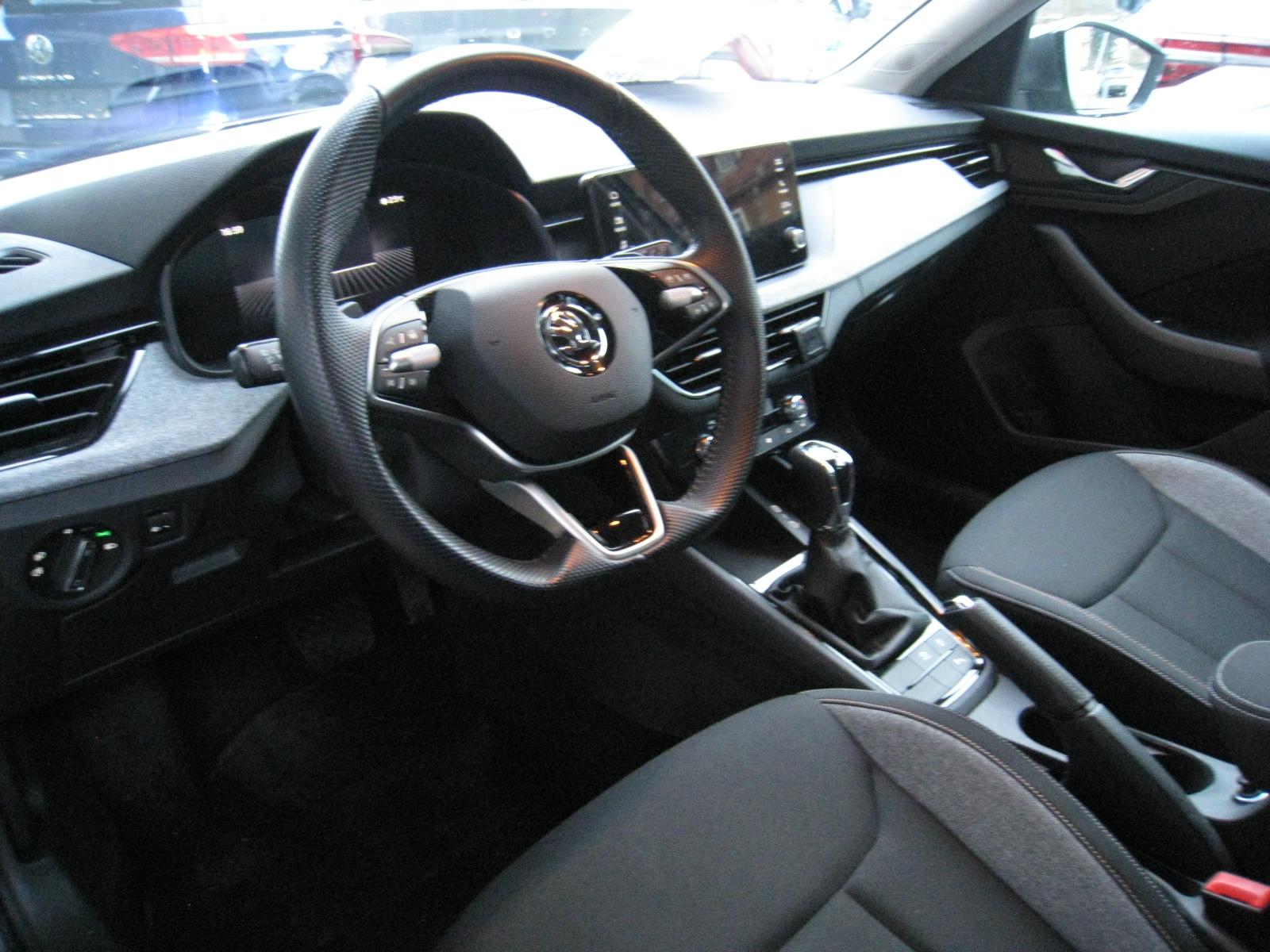 Fahrassistenz-Paket (DK)- ACC aut. Distanzregulierung – Tempomat- Speedlimiter- SPURHALTE Assistent (LANE-Assist)- TRAVEL-Assist: Stau-Assistent- Ablenkungs- und Müdigkeitserkennung- FRONT-Assist incl. City-Notbremsfunktion- Berganfahrassistent- Verkehrszeichenerkennung- eCall - privater Notruf- erweitertem Sicherheitssystem (PreCrash Basic und Front)WINTER-Paket (DK):- Sitzheizung vorne- Waschwasser-Standanzeige- Scheibenwaschdüsen beheizbar- Klimaautomatik CLIMATRONIC 2-ZonenKOMFORT-Paket (DK):- DIGITAL COCKPIT- Fahrprofilauswahl mit konv. Dämpfern- KESSY - schlüssellose ZV- PARK-DISTANZ-Kontrolle vorne und hinten- REAR View: RÜCKFAHRKAMERA- SUNSET: Scheiben ab B-Säule getöntSICHERHEITS-PAKET (DK):- Knie-Airbag Fahrerseite- Seitenairbags vorne und hinten- KopfairbagsLicht-Sicht-Paket (DK):- Licht-/Regensensor- Innenspiegel aut. Abblendbar- Tagfahrlicht mit Coming-/Leaving HomeINFOTAINMENT-Paket (DK):- 8,25 Zoll Skoda Infotainment inklusive kabellosem Apple Carplay- DAB+ digitaler Radioempfang- 8 Lautsprecher- BLUETOOTHWired & Wireless App Connect (Navi mit kompatiblem Smartphone möglich)